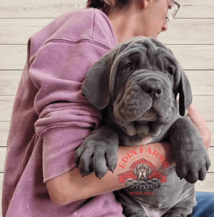 “We highly highly recommend using Jessica and Edin Farms if you are looking for a Neaopolitan Mastiff. My husband and I found Edin Farms on the internet when we were searching for Neo Mastiff breeders in February 2020. Lucky for us, Edin had puppies due at the end of the month! I emailed and Jessica got back to me the same day. I asked a ton of questions and she answered all my questions so thoroughly and even answered questions I hadn’t thought to ask! The entire experience was perfect. I can’t say enough how professional and thorough Jessica was. Every time I had questions she got right back to me. We received pictures and videos of the puppies when they were born and right up until they were 8 weeks and ready to come to us. Once we had picked our puppy we got videos and pictures of just our little pup. Jessica has a driver (her aunt) who drove our puppy to us in Massachusetts which was awesome. Everything was so organized and smooth sailing every step of the way. The paperwork we received from Edin with our puppy’s vet records were perfect and our vet was thrilled everything was in such good order. It’s clear that Jessica and Edin REALLY care about their puppies and take awesome care of them and make sure that they’ll be going to good homes. Our puppy arrived and she was absolutely perfect! She is such an awesome addition to our family. She’s healthy and beautiful and we love her. Again - we would HIGHLY recommend working with Edin farms. We would (and probably will!) buy a Neo from them again!!”